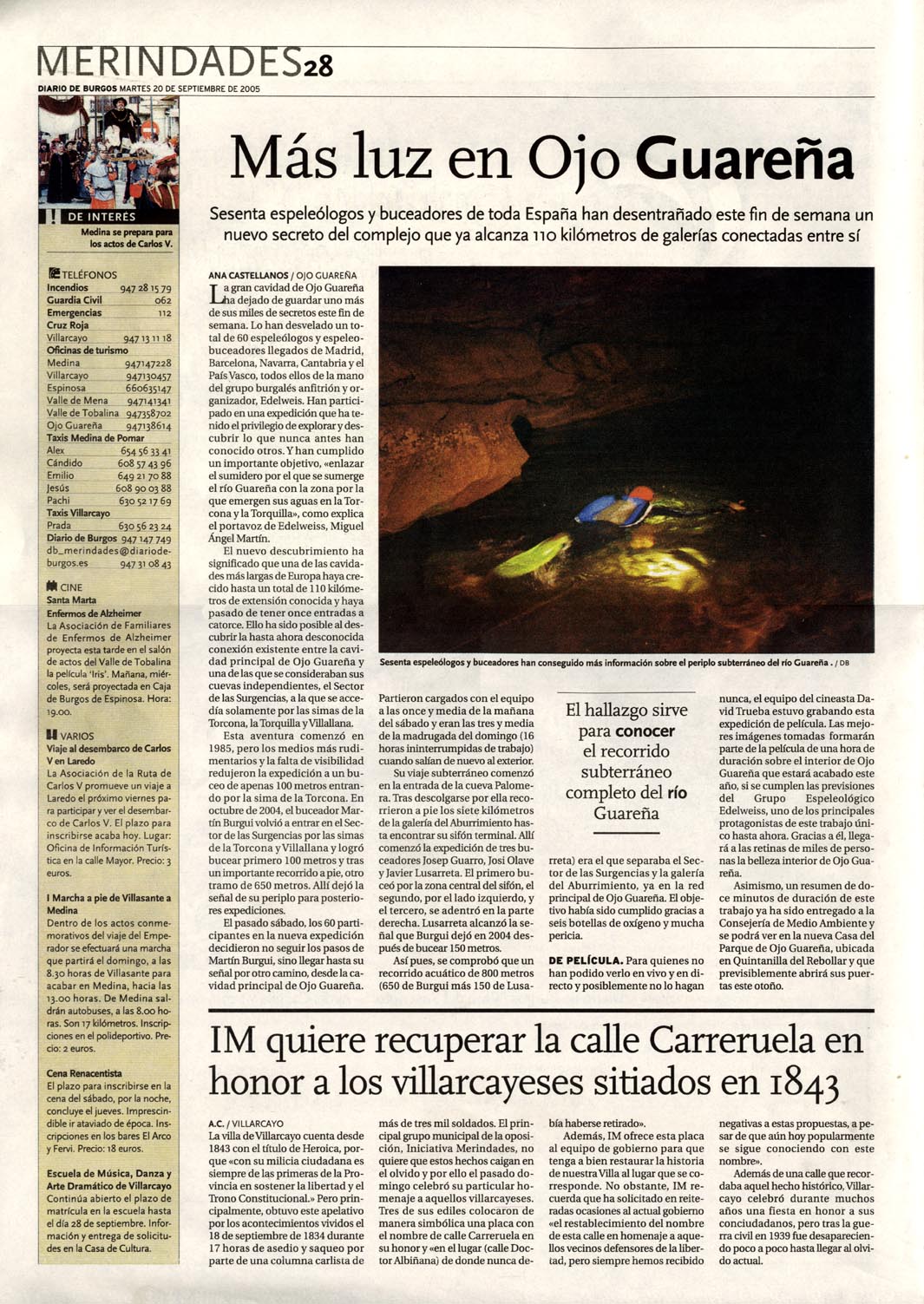 En el año 2003, dentro del proyecto de exploración de sifones del Conjunto Karstico de Ojo Guareña, los espeleobuceadores Roberto Cano y Juanma Rodriguez de la